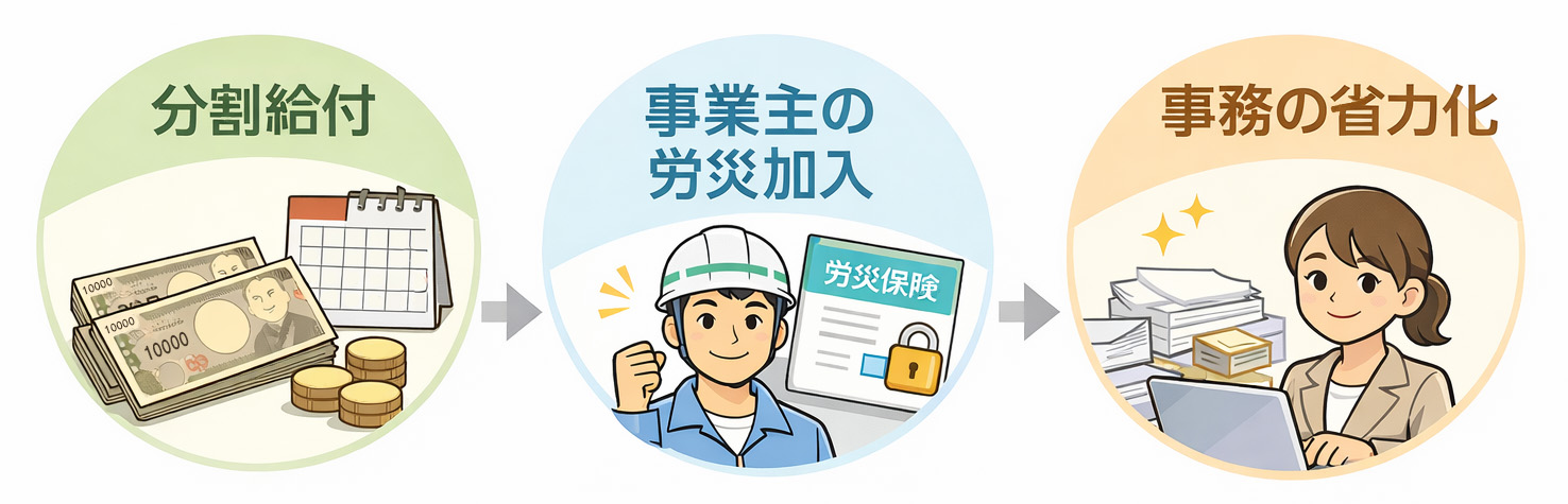 | ・ | 特別加入として代表者(役員)・家族従業員も労災保険に加入できます。 |